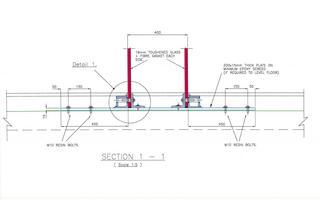 The boxes are made of 4 faces of laminated glass sheets, with glass fins to prop. The combination of headroom constraints coupled with the construction of the existing period building limited the options for fixing. We restrained the base of the boxes using spreaders connected to the existing filler joists in the floor, all concealed in the floor finishes.