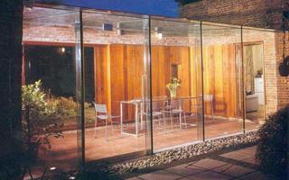 A very tight budget meant that the conservatory was single glazed, but the use of structural glass beams and columns, all very carefully and minimally detailed, gives it an elegance that belies the financial constraints.