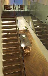 The final touches were a glazed floor over the lower ground living area reached by a cantilevered tread staircase.