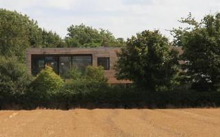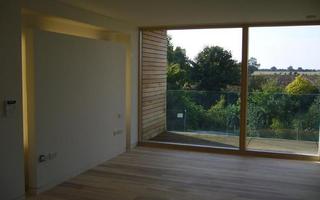 Steel frame on deep strip foundations with insulated STO render cladding, alternating with sweet chestnut cladding on the 1st floor.