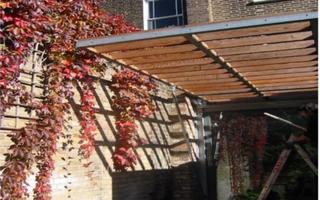 The wall screen can be elevated using a bespoke gas-spring mechanism, to form a canopy/brise soleil. This allows the door to open fully and connect the conservatory to the garden
