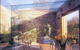 A very tight budget meant that the conservatory was single glazed, but the use of structural glass beams and columns, all very carefully and minimally detailed, gives it an elegance that belies the financial constraints.