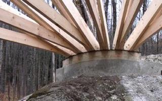 The collective decision was made to run with developing a shower pod idea- lightweight timber frames springing from the rock face and supported at their free ends on the ground. The basic sizing of the truss elements was explored-the students were given ground rules for sizing compression and tension elements for the spans involved, and for the various likely connections- between members and to the supports. The concepts of concrete 'feet' and the connection to the rock face with a mass concrete pad cast around steel dowels chemically anchored into the rock were agreed.